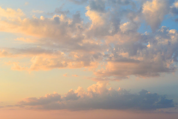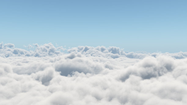 白云卡通3d渲染-蓝色粉彩背景上柔软蓬松的圆形云彩。