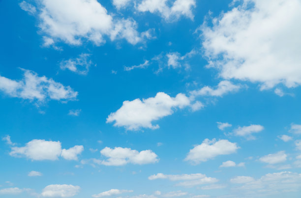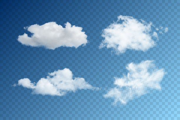 蓬松的白色卡通云在蓝天矢量集。阴天天堂