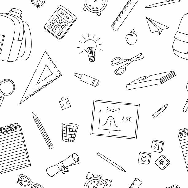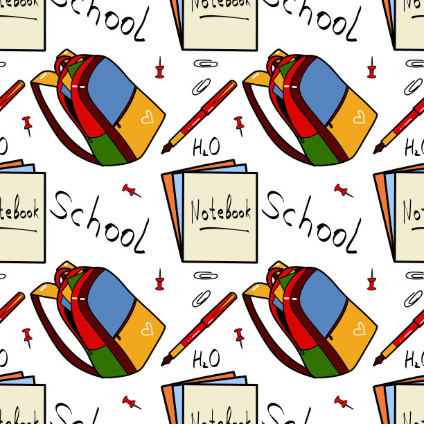 无缝图案与线校用品。学校元素的背景。白色背景的信纸。