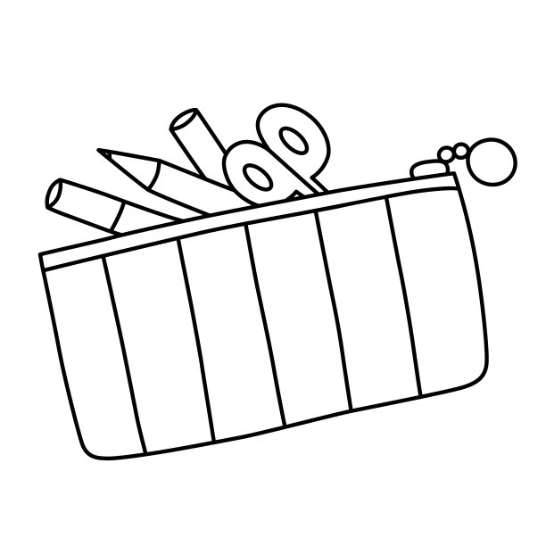 铅笔盒图标,矢量插图的笔袋拉链,钢笔,铅笔和剪刀在情况下,涂鸦学校用品