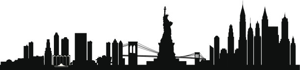 纽约市天际线,矢量剪纸插图。自由女神像,大桥,世界著名的地标。全球旅行。