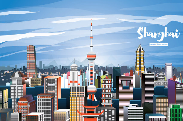 剪纸风格的上海城市,白色彩色纸,矢量股票插图。所有著名建筑的城市景观。天际线上海城市构图设计