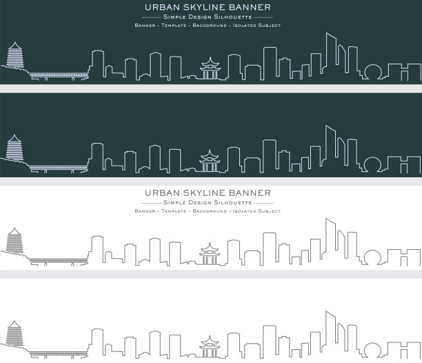 中国,重庆建筑线天际线插图。线性向量的城市景观与著名的地标,城市景观,设计图标。风景与可编辑的笔触