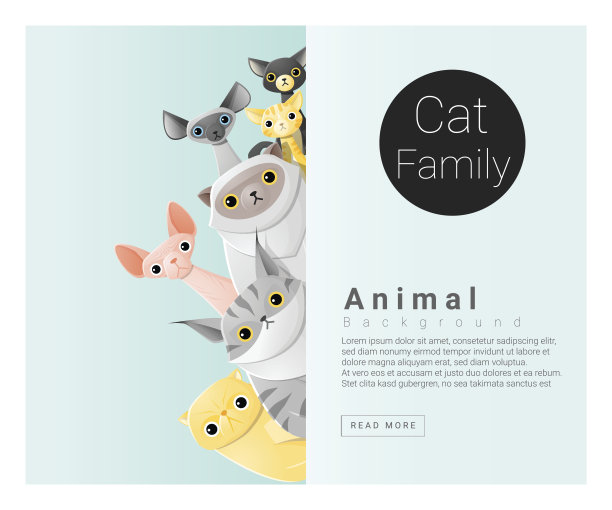 猫和狗平面可编辑矢量插图,剪辑艺术