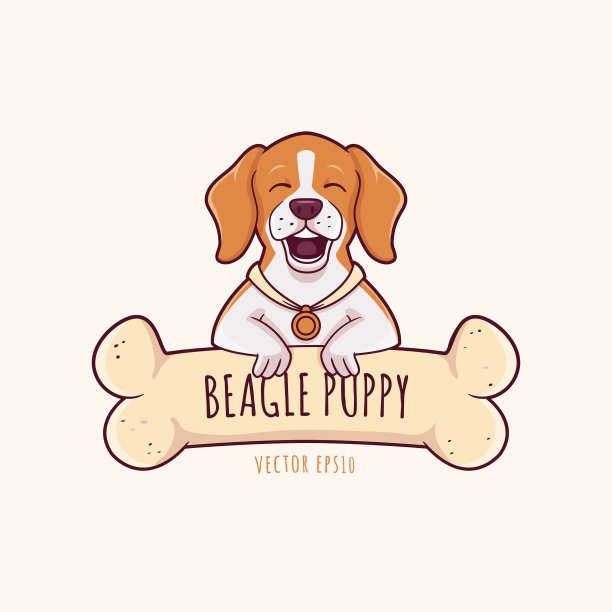 可爱的小狗狗在装饰着爪子的床上,躺在白色背景上的卡通风格的快乐动物。矢量图