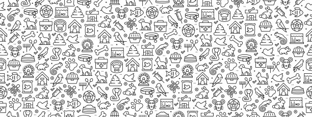 家畜-细线矢量图标设置。可编辑的中风。像素完美。设置包含如宠物,狗,猫,鸟,鱼,仓鼠,老鼠,兔子,宠物食品等图标。