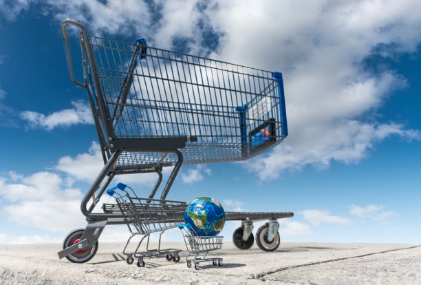 欧盟旗帜,电子商务和市场推车,电子商务形象