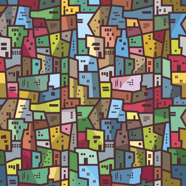 色彩丰富的城市抽象图案无缝明亮的纹理