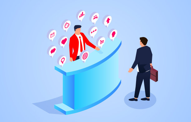 讨论和会议,业务小组小组站在演讲气泡旁边发言