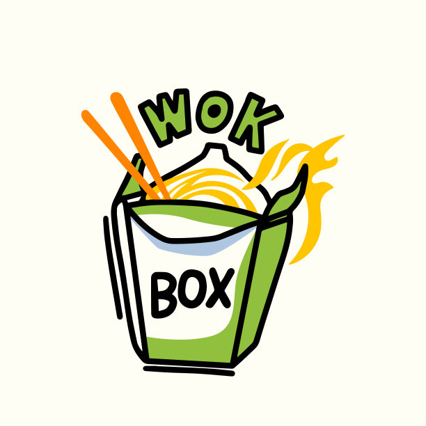 带面条、火、筷子的锅盒,中餐厅设计元素,亚洲外卖理念